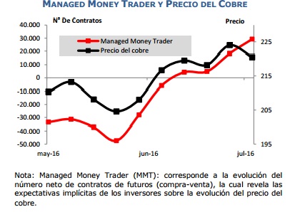 Esta semana el precio del cobre bajó 1,2%, cerrando la semana en ¢US$/lb 217,4 la libra. Esta disminución se debe a la fortaleza del dólar a nivel mundial impulsada por los buenos datos de empleo del sector privado de Estados Unidos, dados a conocer a mediados de la semana. Las débiles cifras de la actividad económica de China también incidieron en la disminución del precio del cobre.