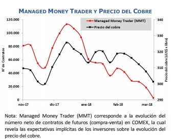 Los inversores y especuladores en COMEX disminuyeron en 30% sus posiciones netas en contratos futuros de cobre. Esto asociado a las tensiones comerciales entre EE.UU y China como al aumento en los inventarios del metal en el transcurso del año.
