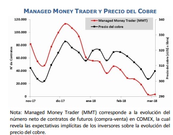 Esta semana el precio promedio se situó en US$ 3,1 la libra frente a US$ 3,04 de la semana previa, apoyado por: • Disminuyeron las tensiones comerciales entre Estados Unidos y China. Funcionarios de la administración TRUMP señalaron que la disputa comercial podría resolverse a través de negociaciones. También el gobierno chino estaría dispuesto a reducir los aranceles a la importación de productos como los automóviles, beneficiando al sector automotriz estadounidense. Asimismo, elevaría el límite de propiedad extranjera en el sector automotor chino. • El dólar mantiene la tendencia a la depreciación iniciada a principios de 2018. • Los inventarios de cobre acentúan la tendencia a la baja. Estos han disminuido en 52 mil toneladas en las últimas dos semanas. • Expectativas de mayor consumo de cobre en el corto plazo. Históricamente el periodo primavera-verano ha implicado un mayor consumo en el mercado chino por la reactivación de proyectos de infraestructura, viviendas y redes eléctricas. • Aunque en forma acotada, los inversores han elevado las posiciones largas en contratos de futuros de cobre, evidenciando expectativas más favorables para el precio del metal. Estados Unidos: Datos sugieren alza en inflación subyacente