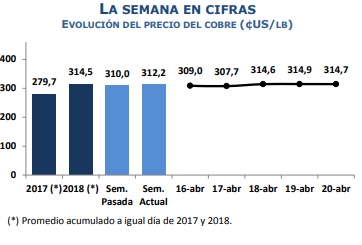 Comportamiento semanal del precio del cobre.