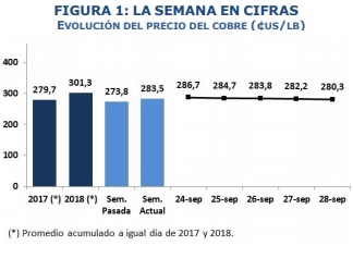 Comportamiento semanal del precio del cobre.