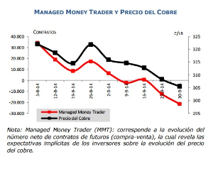 El indicador Managed Money Trader de la bolsa de futuros de COMEX fortaleció el sesgo negativo para la cotización del cobre en el corto plazo.