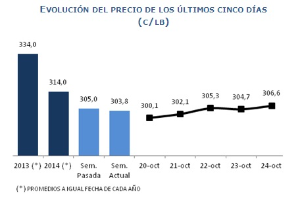 En lo que va del año la disminución de inventarios en las bolsas acumulan una disminución de 44%, equivalente a 223.026 toneladas.