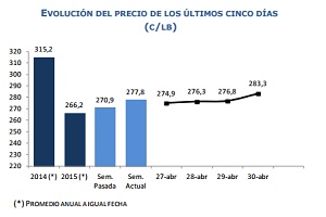 Hoy la cotización del cobre aumentó 10 centavos de dólar por libra respecto del viernes pasado. El diagnóstico de la FED sobre un debilitamiento del mercado laboral en las últimas semanas y de la actividad económica general, sugieren que la entidad tendrá que esperar, al menos, hasta el tercer trimestre para comenzar a normalizar la política monetaria. Esta situación generó una fuerte depreciación del dólar en los mercados externos, reduciendo el costo de adquisición de commodities transados en la moneda estadounidense e induciendo una mayor demanda. Ello en un contexto de reducción significativa de inventarios en la Bolsa de Futuros de Shanghai.