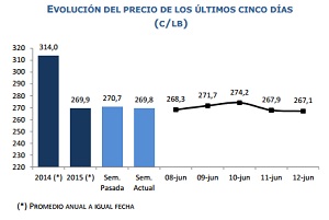 Hoy la cotización del cobre retrocedió 1,6 centavos de dólar la libra respecto del viernes pasado. Esto no obstante la caída en los inventarios de cobre en las bolsas de metales, en poco menos de 10 mil toneladas. La tendencia del precio durante la semana fue influenciada por las débiles cifras de la economía China, particularmente la caída en la inversión en activo fijo, la incertidumbre generada por las negociaciones de la deuda griega y una leve apreciación del dólar en los mercados externos, aunque de menor magnitud que la semana previa, en espera de la decisión de la FED de la semana entrante.